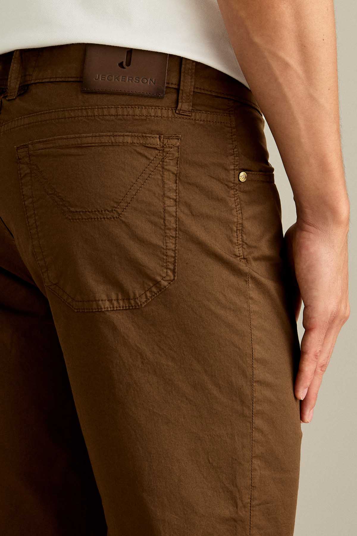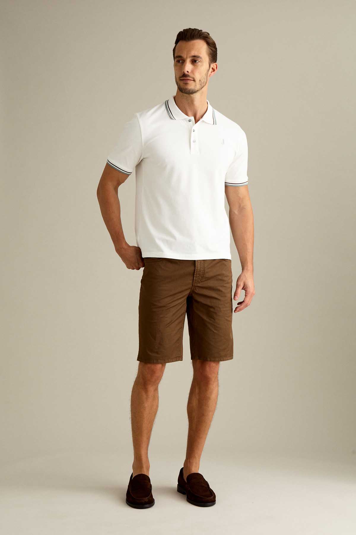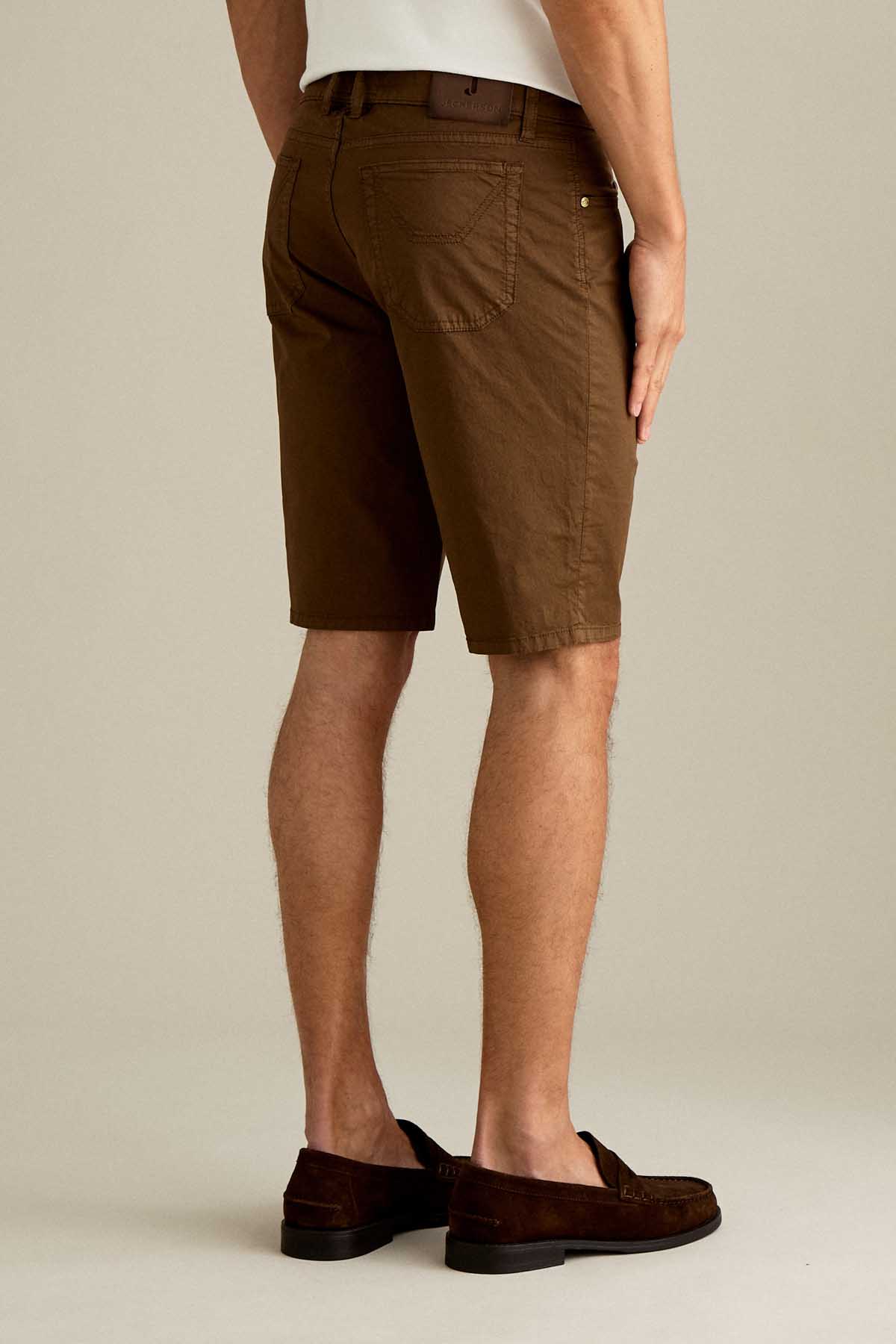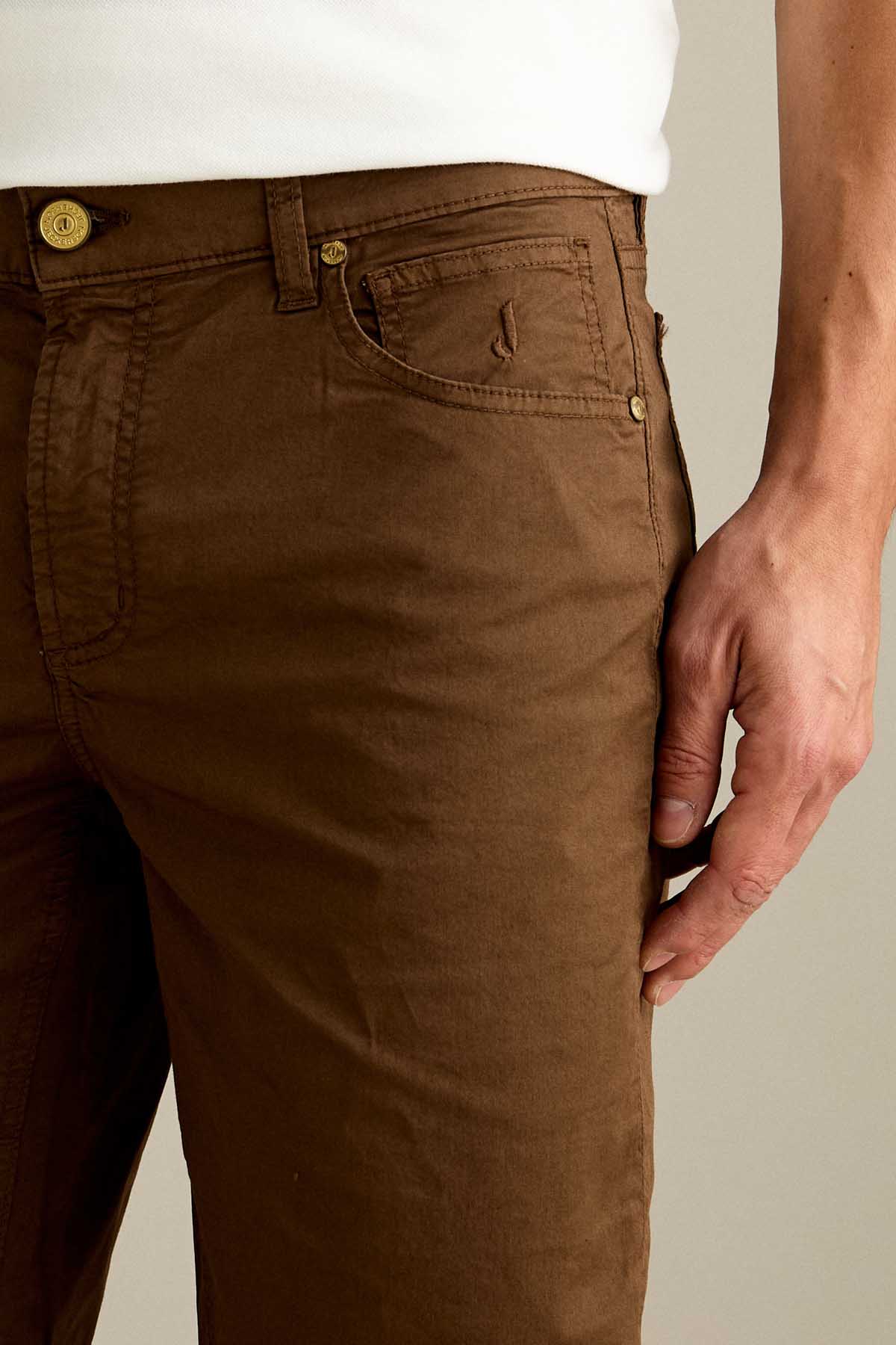 Il bermuda Jo’ 5 tasche slim fit è ideale per uno stile estivo moderno e versatile. Realizzato in gabardina light comfort, assicura leggerezza, traspirabilità e comfort durante tutta la giornata. Tinto in capo nella tonalità Marrone Chiaro, dona un’estetica calda e naturale. Dotato di chiusura con zip e bottone, è completato da salpa in pelle logata, bottone in vita e rivetti in finitura ottone opaco con loghi a rilievo.