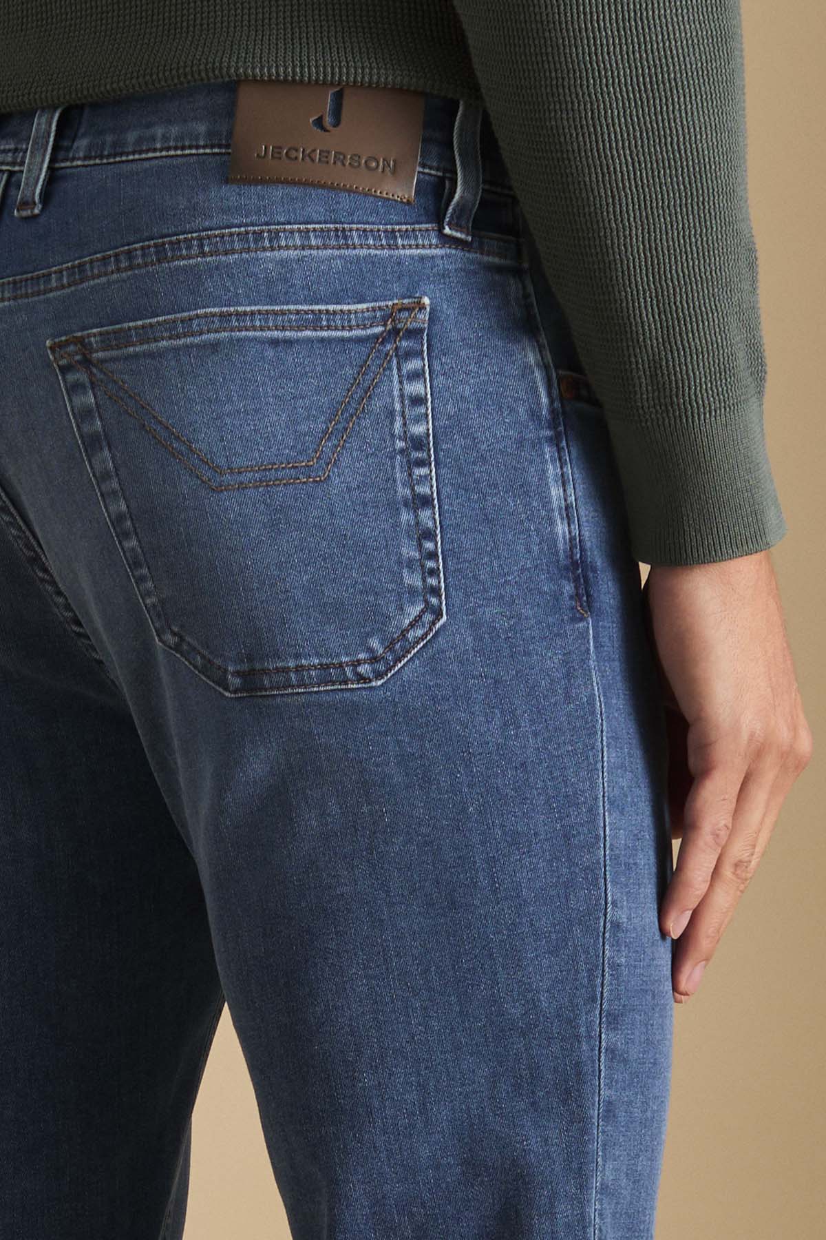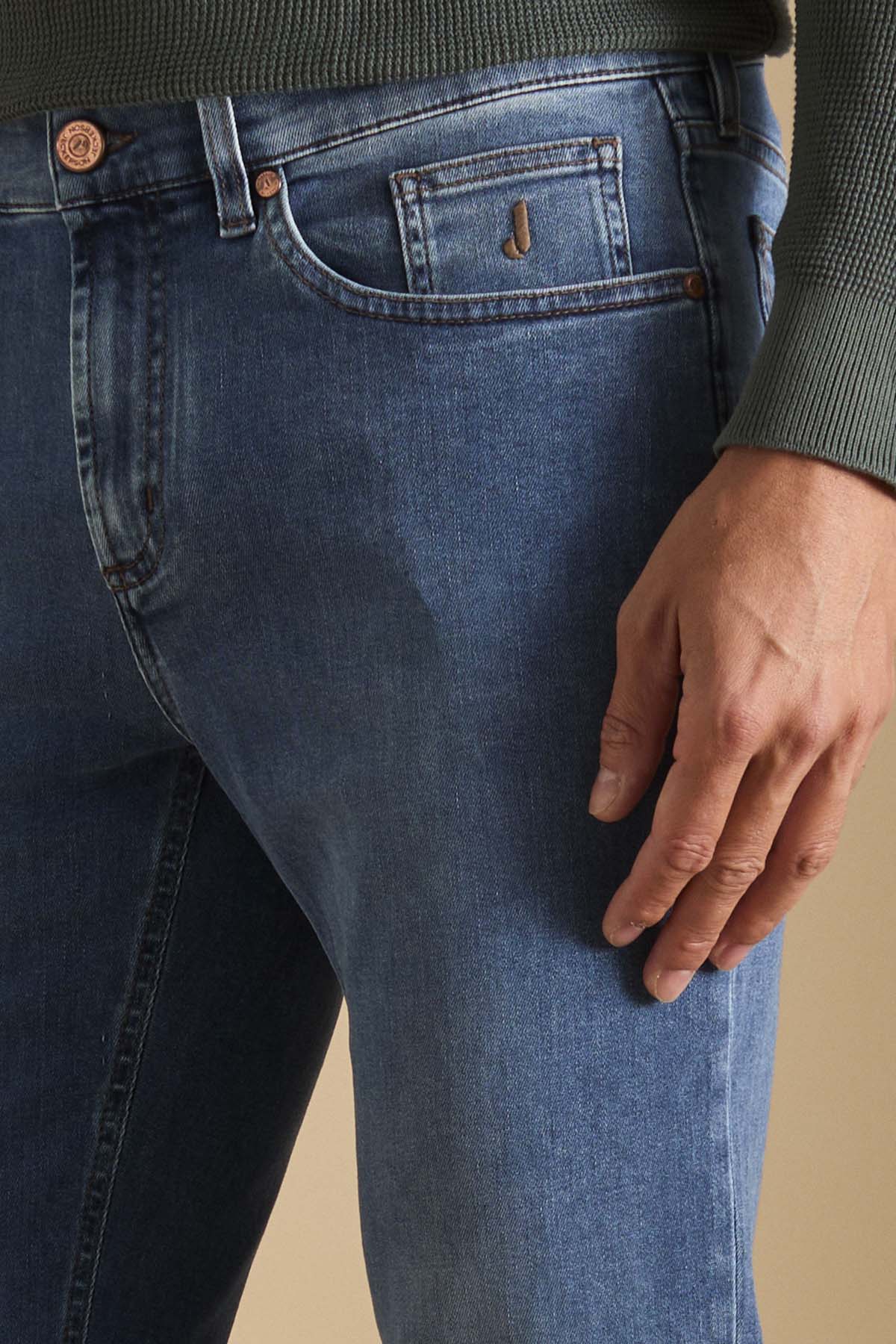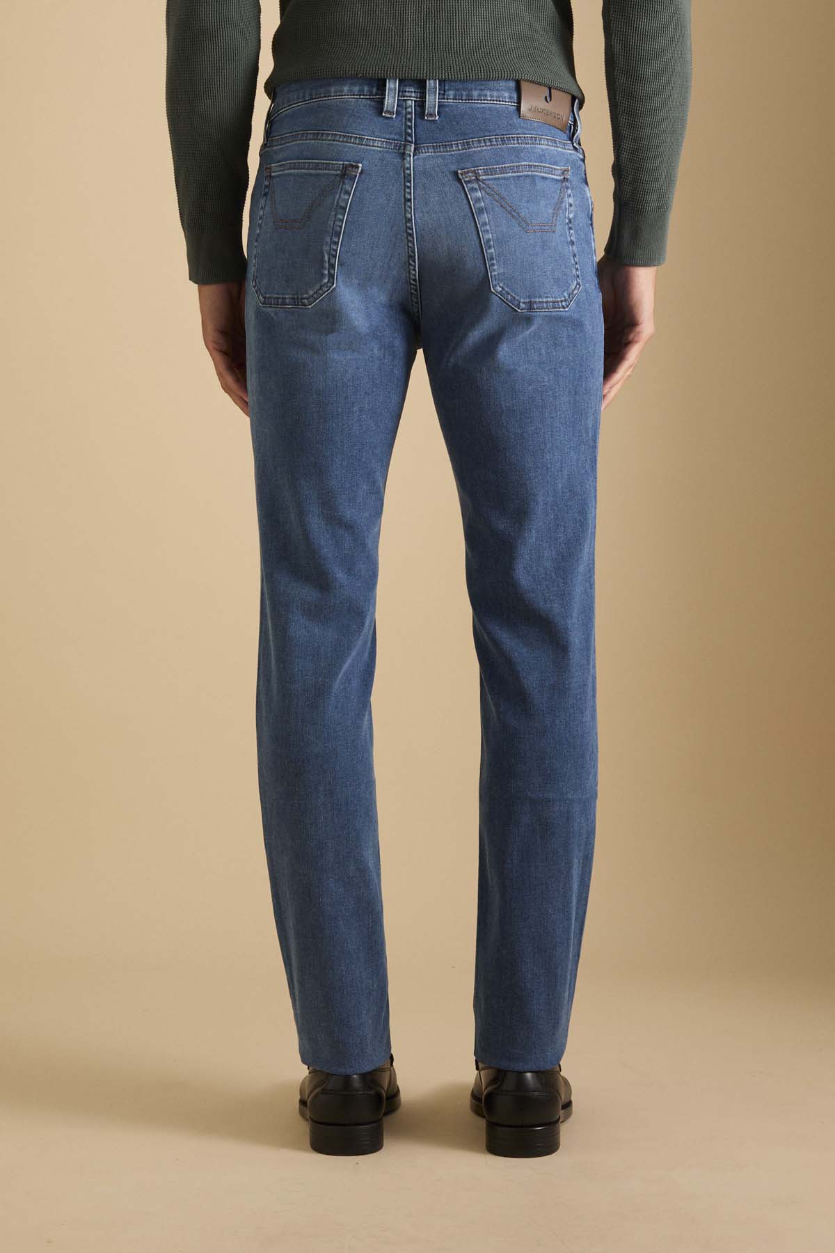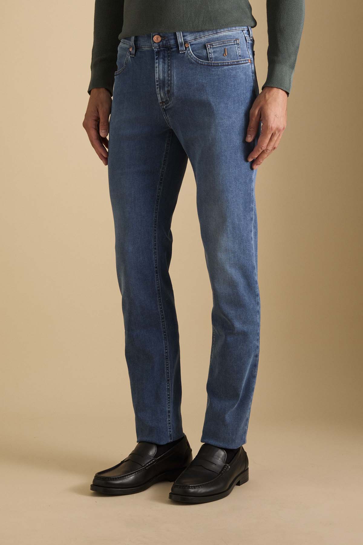 James, pantalone 5 tasche con inserto dell’iconico disegno toppa, skinny fit. Allacciatura con zip. Realizzato in denim super stretch base blu, denim morbido e con un buon recovery che permette al pantalone indossato di mantenere sempre la sua linea agevolando i movimenti. Il lavaggio conferisce al pantalone un colore blu di intensità medio chiara con lievi sabbiature sui punti di cucitura che conferiscono al pantalone un aspetto molto casual chic.