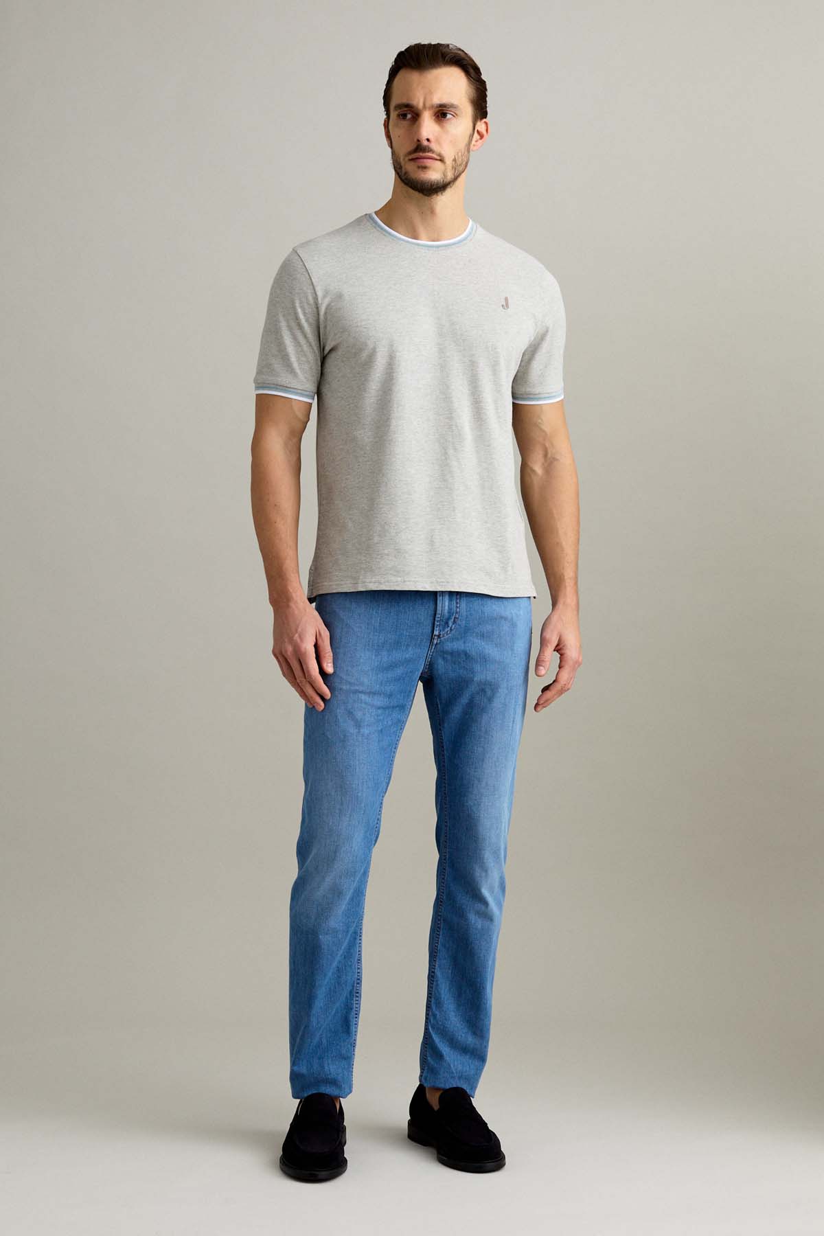 Realizzato in denim base blu super comfort dal peso ultra leggero di 8,75 oz, nel colore Blu Bleach Basic, è ideale per look casual e versatili.