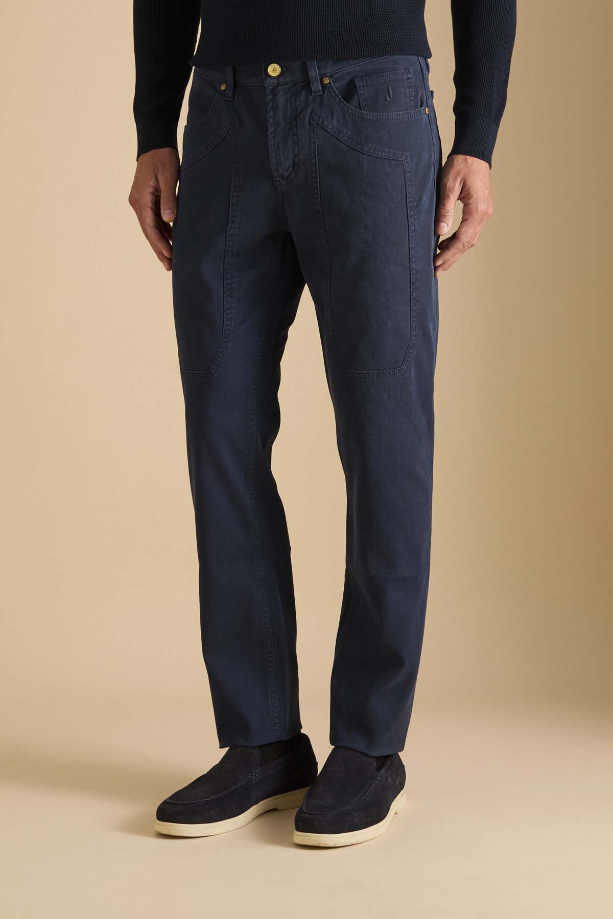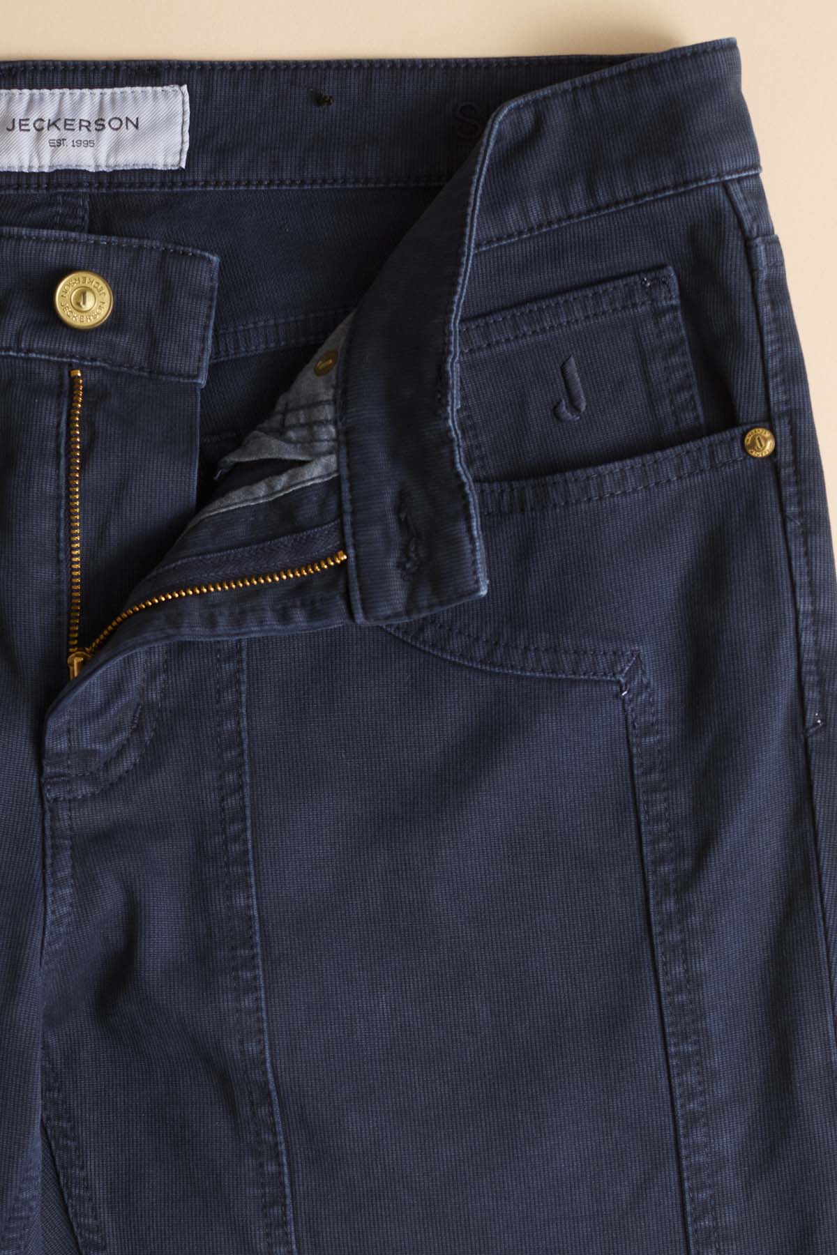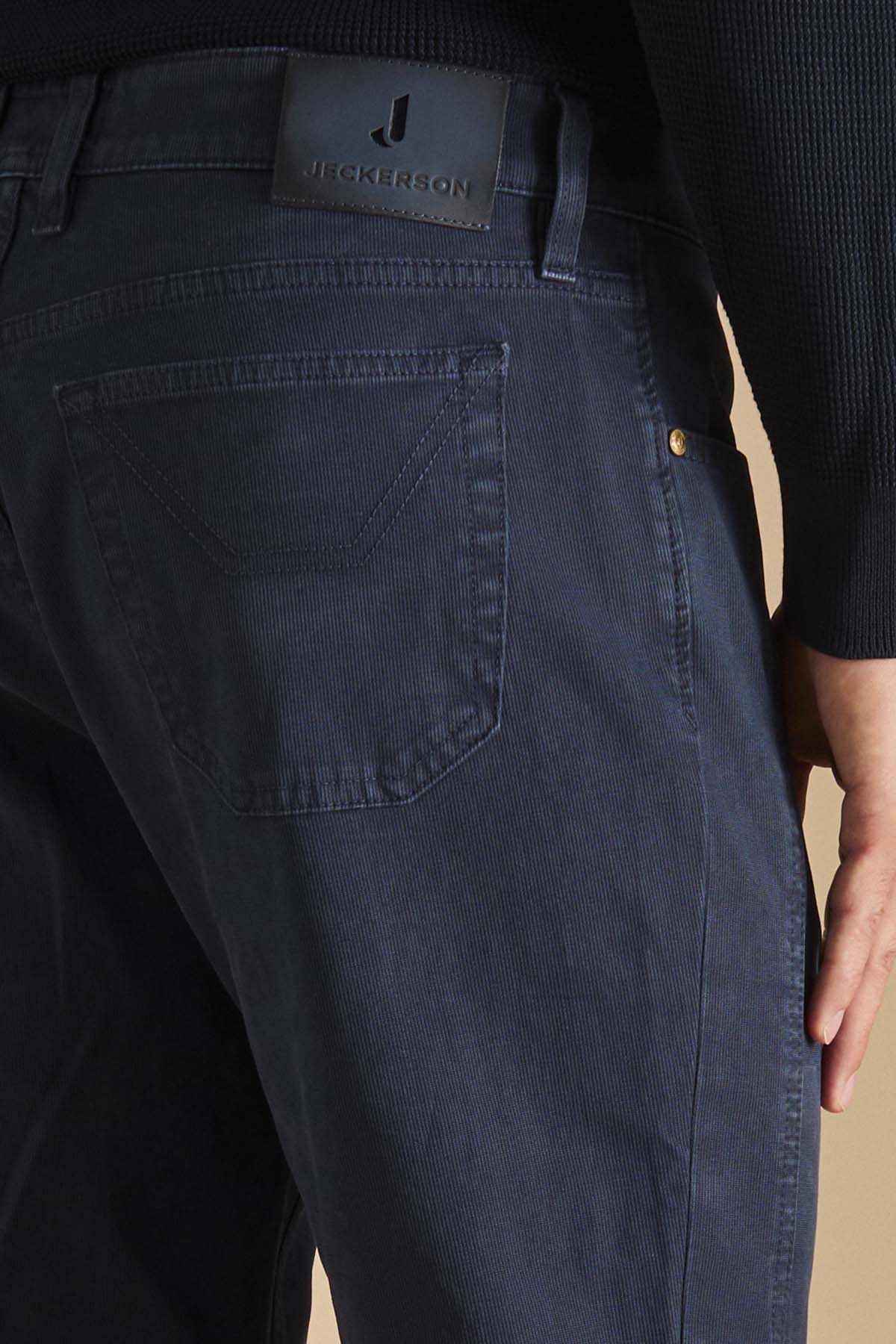 John pantalone 5 tasche con inserto del disegno iconico, toppa slim fit. Allacciatura classica con zip. Realizzato in armatura piquet, definita tale in quanto si presenta con righine sottili. Viene anche comunemente detto “mille-righe”, stretch, un tessuto compatto e resistente.