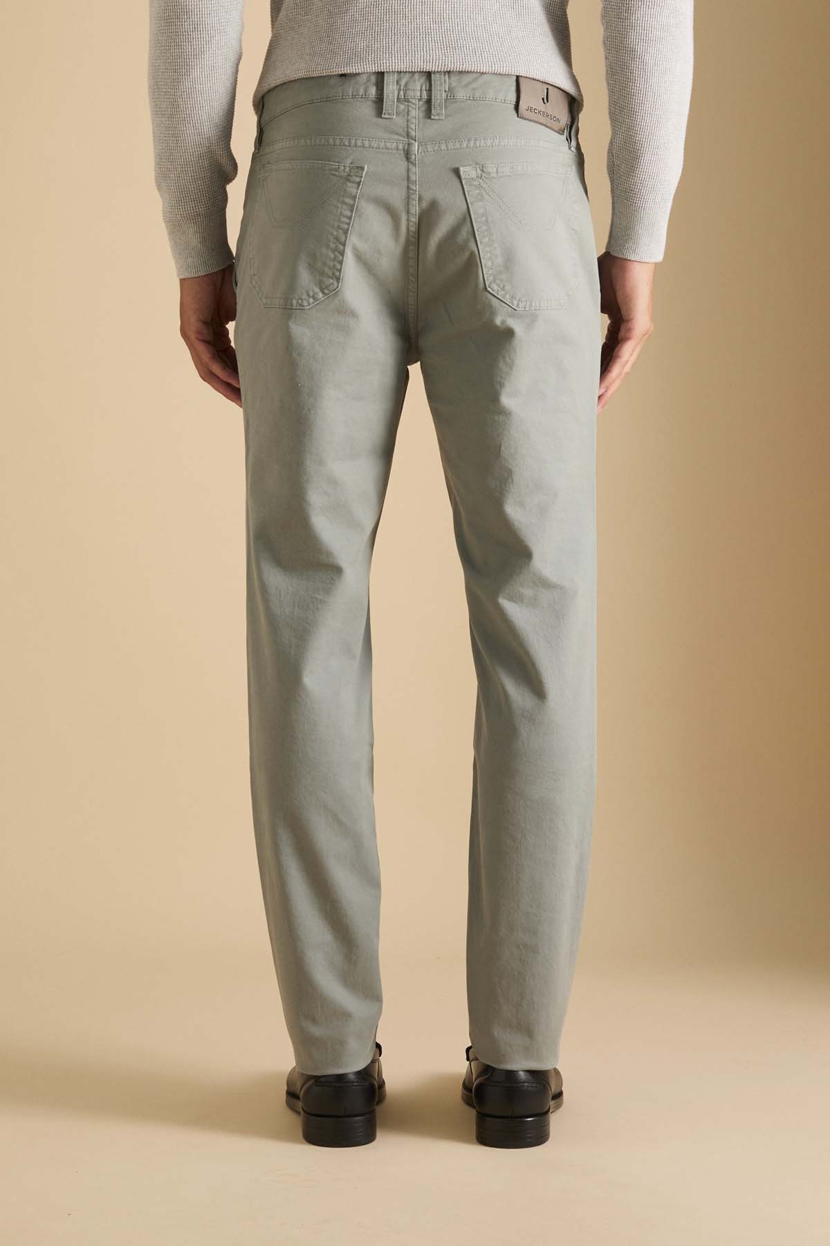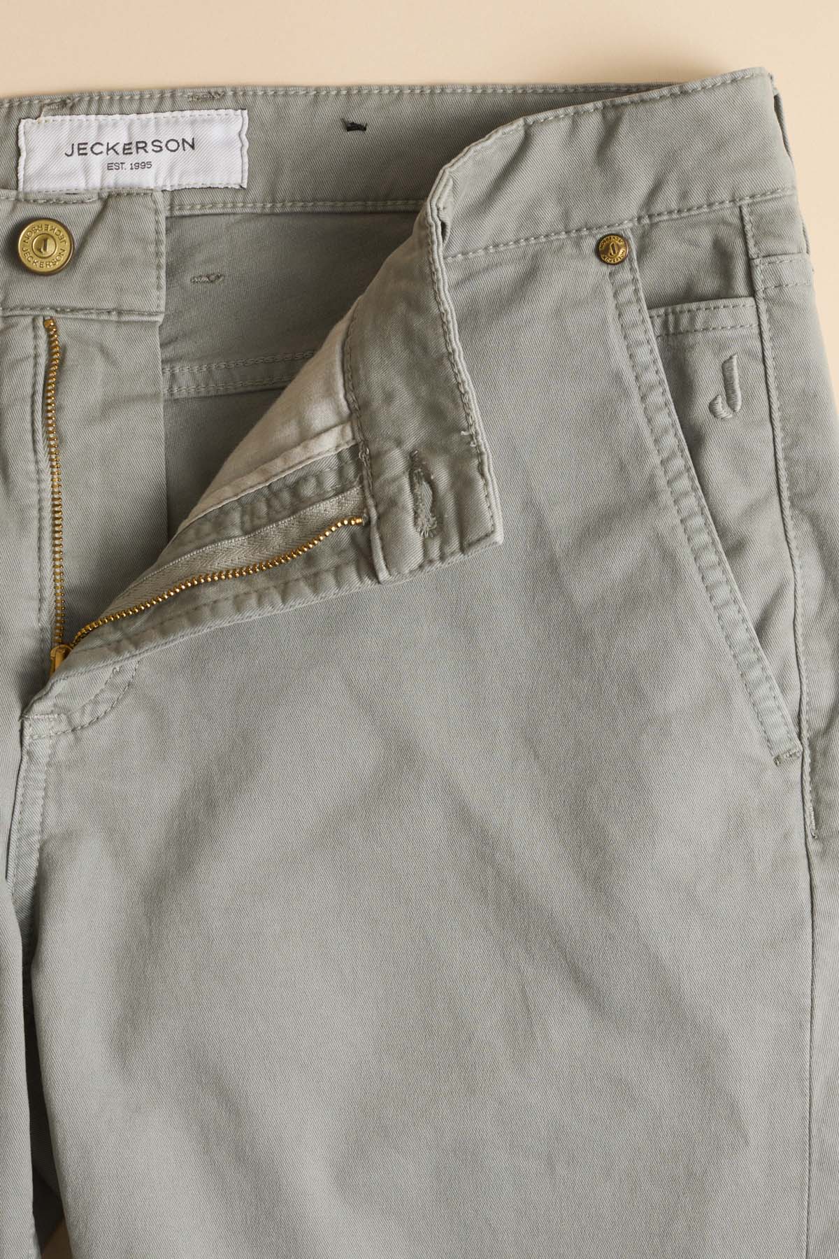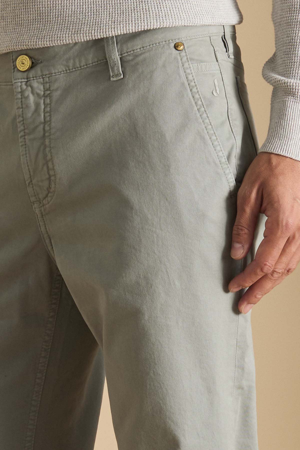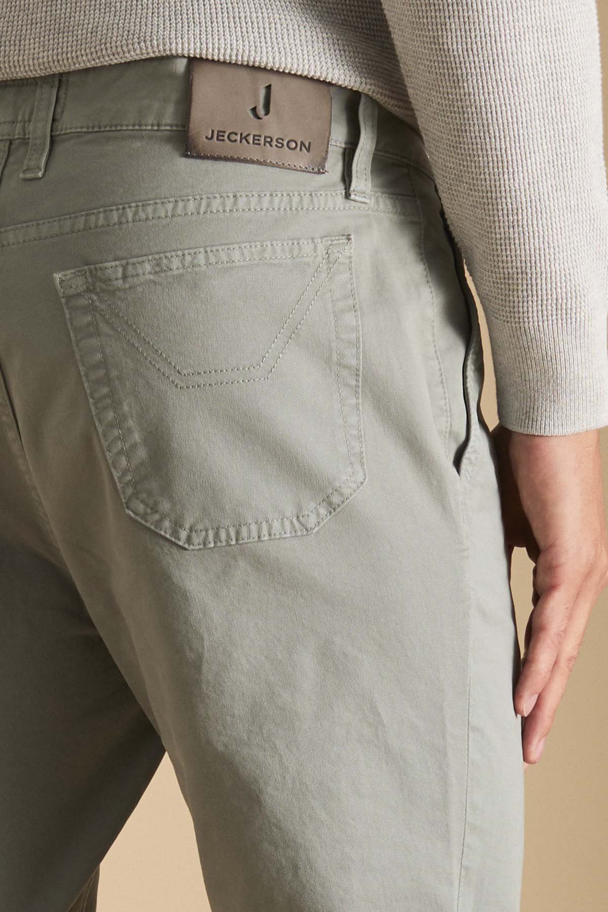 Jasper pantalone 5 tasche tasca america slim fit. Allacciatura classica con zip. Realizzato in gabardina stretch di cotone dalla mano peach skin, un tessuto compatto e resistente con un elevato recovery che perfette al pantalone indossato di mantenere sempre la sua linea agevolando i movimenti.