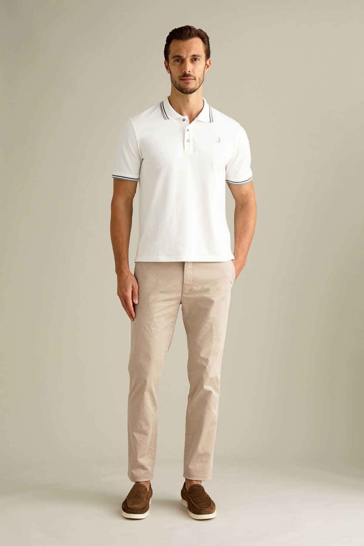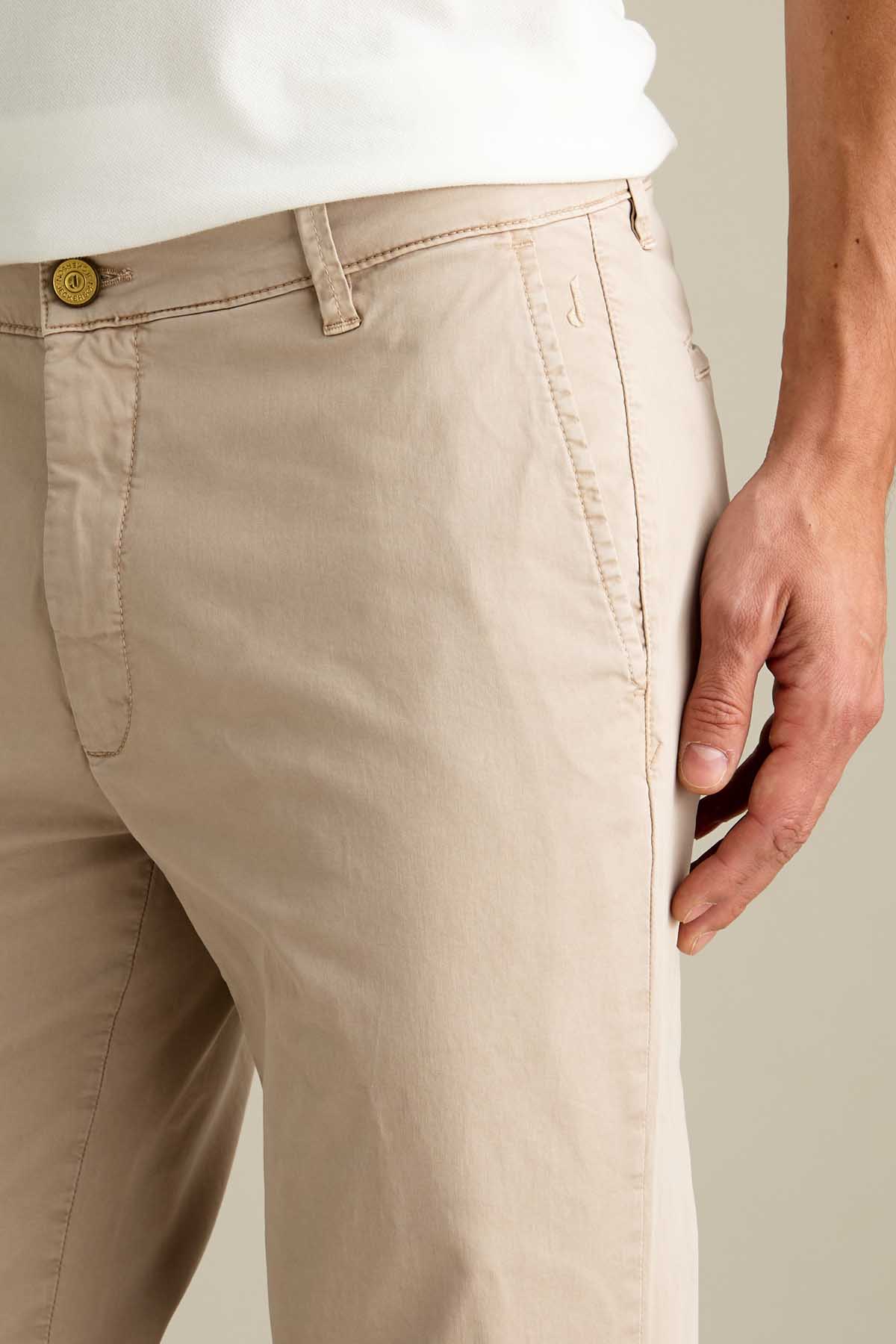 Il pantalone Jack chino slim fit è ideale per uno stile contemporaneo e versatile. Realizzato in raso comfort e sottoposto a lavaggio old, conferisce al capo un effetto tridimensionale e una mano piacevole al tatto. Proposto nella tonalità Beige Cemento, dona un’estetica raffinata e contemporanea. Dotato di chiusura con zip e bottone, è completato da salpa in pelle, bottone in vita e rivetto personalizzato in finitura ottone opaco.