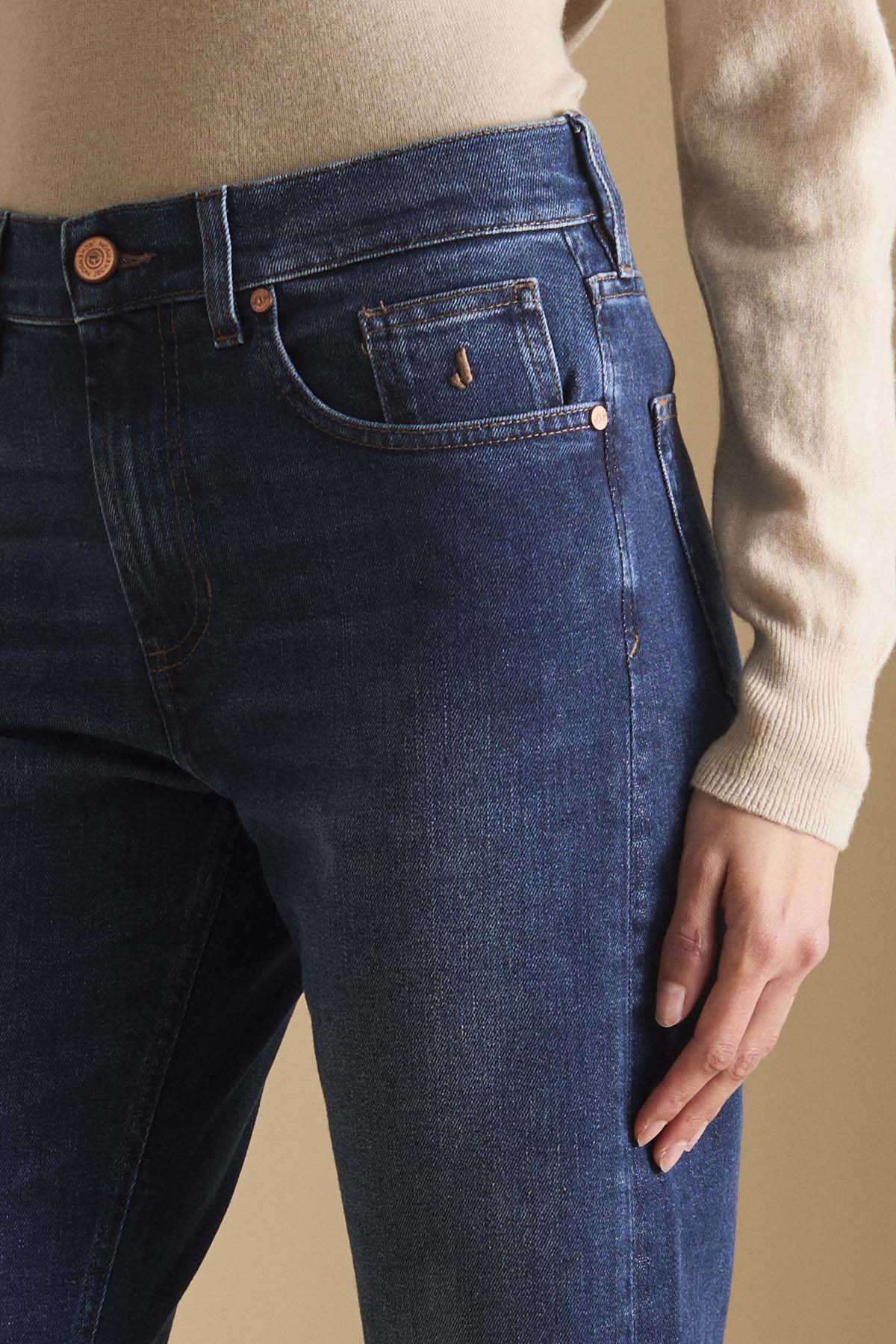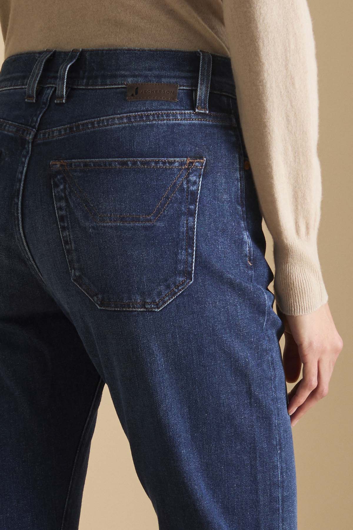 Pantalone 5 tasche straight fit realizzato in denim comfort tri-blend in colore blu scuro. Il tessuto del capo ha la caratteristica di garantire totale libertà di movimento e un eccellente ritorno di forma, mantenendo il carattere e la resistenza del denim più vero e autentico. Il capo è caratterizzato da cintura interna che riporta il nome e il fit del modello ricamati in tono con le cuciture e logo J ricamato sul taschino sinistro.