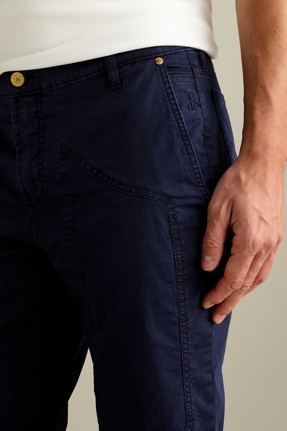 Il pantalone Jevon tasca America 5 tasche slim fit, con iconico inserto toppa, è ideale per uno stile contemporaneo e versatile. Realizzato in raso comfort e sottoposto a lavaggio old, conferisce al capo un effetto tridimensionale e una mano piacevole al tatto. Tinto in capo nella tonalità Blu Scuro, dona un’estetica elegante e senza tempo. Dotato di chiusura con zip e bottone, è completato da salpa in pelle, bottone in vita e rivetto personalizzato in finitura ottone opaco.