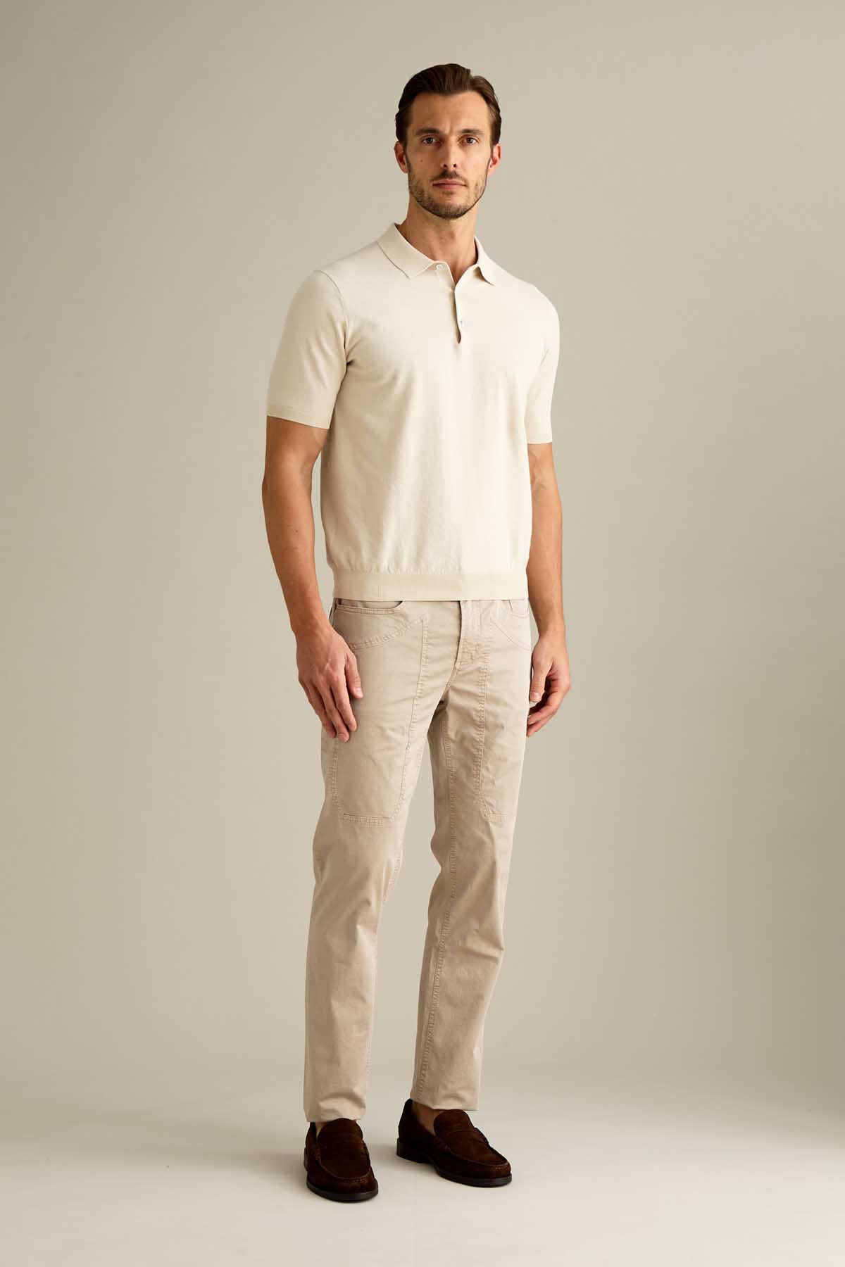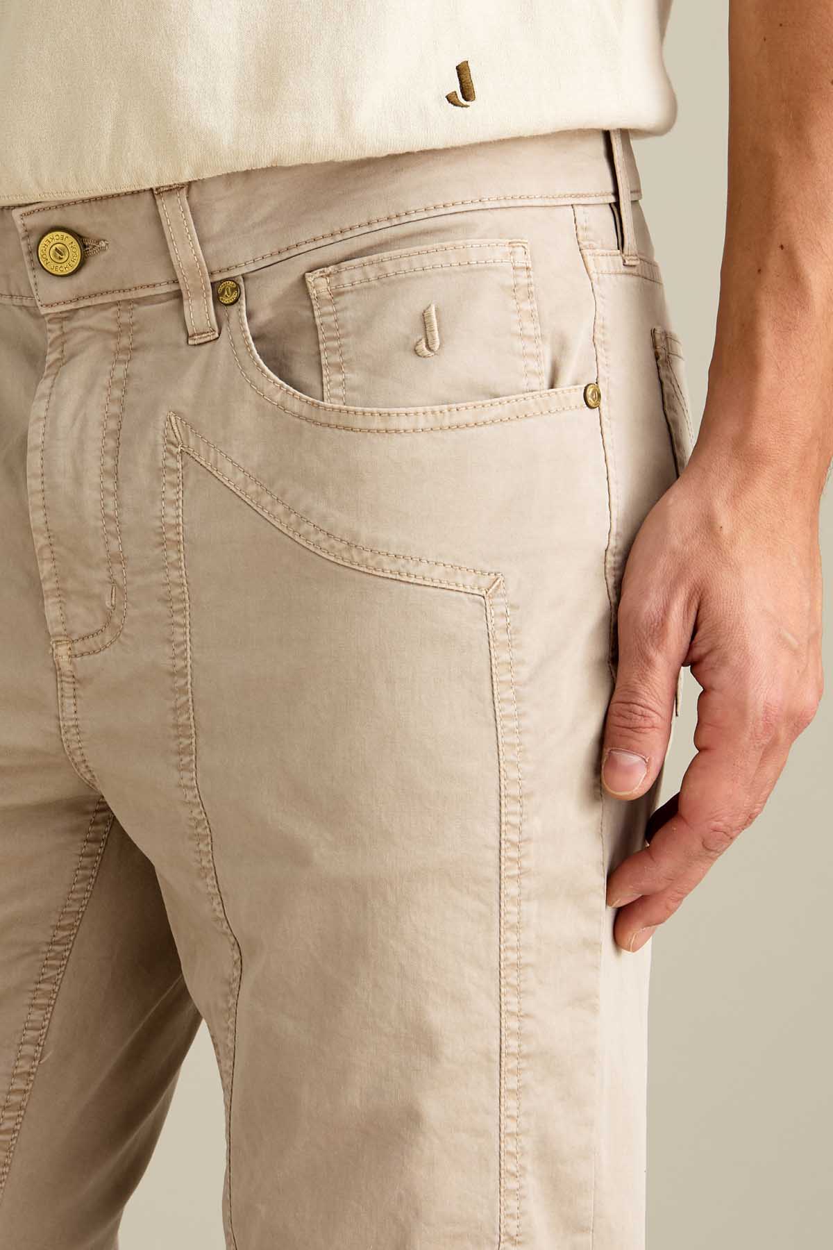 Il pantalone John 5 tasche slim fit, con iconico inserto toppa, è ideale per uno stile contemporaneo e versatile. Realizzato in raso comfort e sottoposto a lavaggio old, conferisce al capo un effetto tridimensionale e una mano piacevole al tatto. Tinto in capo nella tonalità Beige Cemento, dona un’estetica contemporanea dal gusto sofisticato. Dotato di chiusura con zip e bottone, è completato da salpa in pelle, bottone in vita e rivetti personalizzati in finitura ottone opaco.