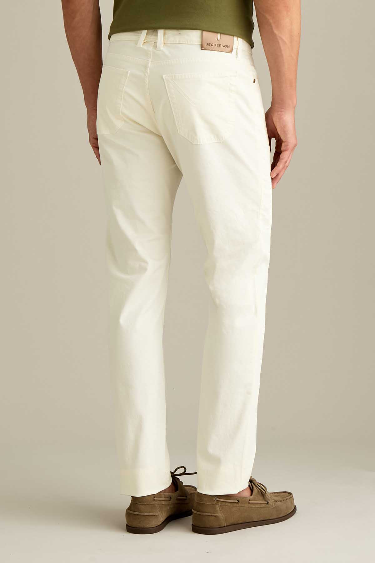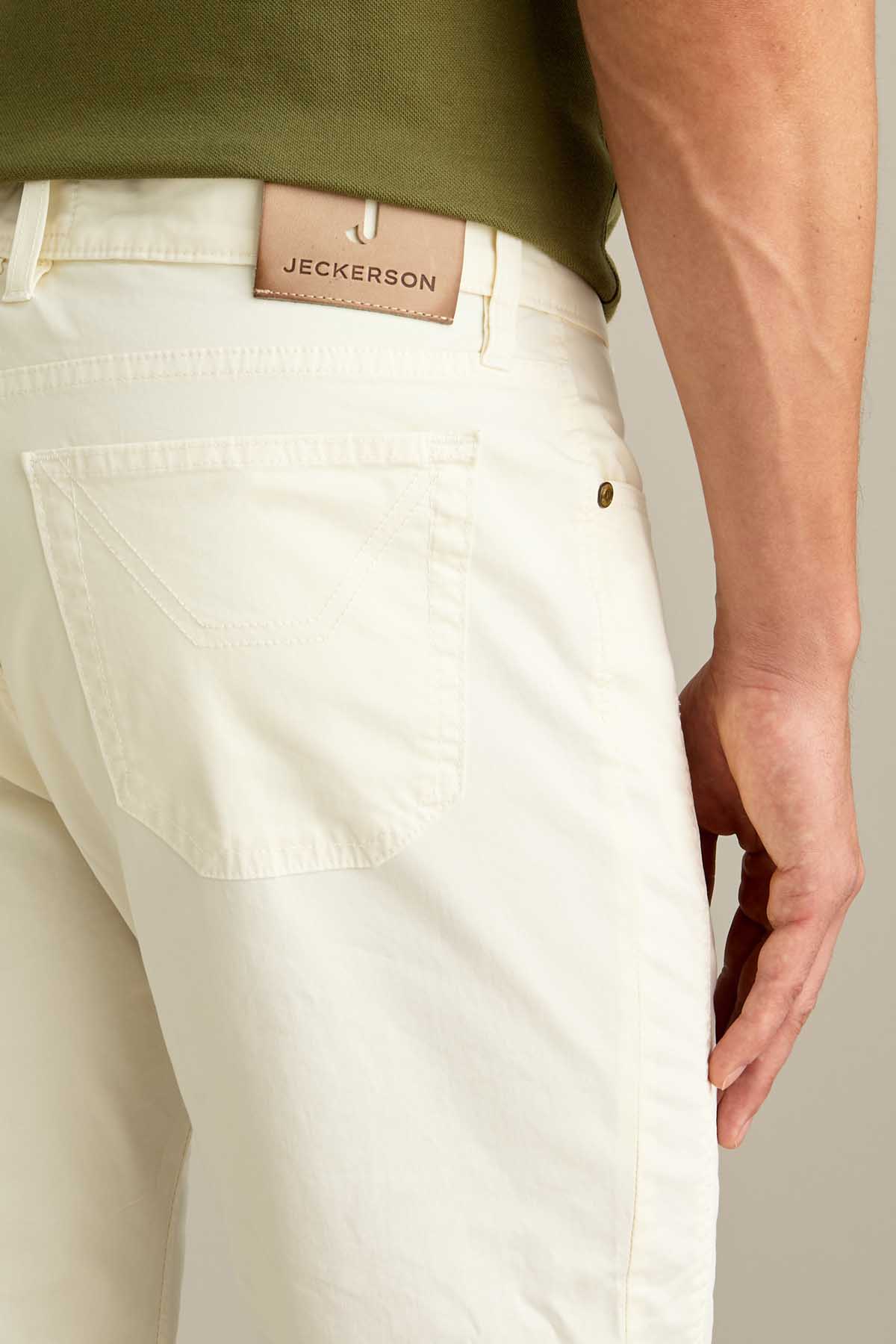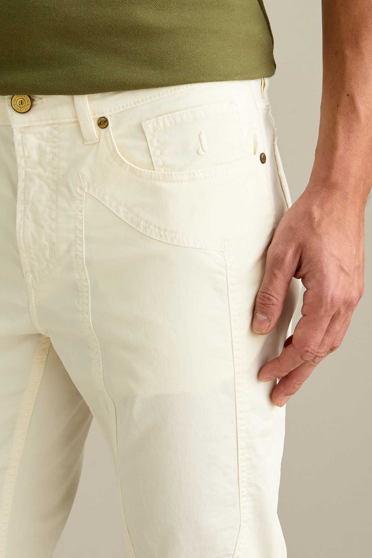 Il pantalone John 5 tasche slim fit, con iconico inserto toppa, è ideale per uno stile contemporaneo e versatile. Realizzato in raso comfort e sottoposto a lavaggio old, conferisce al capo un effetto tridimensionale e una mano piacevole al tatto. Tinto in capo nella tonalità Bianco Neve, dona un’estetica fresca e contemporanea. Dotato di chiusura con zip e bottone, è completato da salpa in pelle, bottone in vita e rivetti personalizzati in finitura ottone opaco.