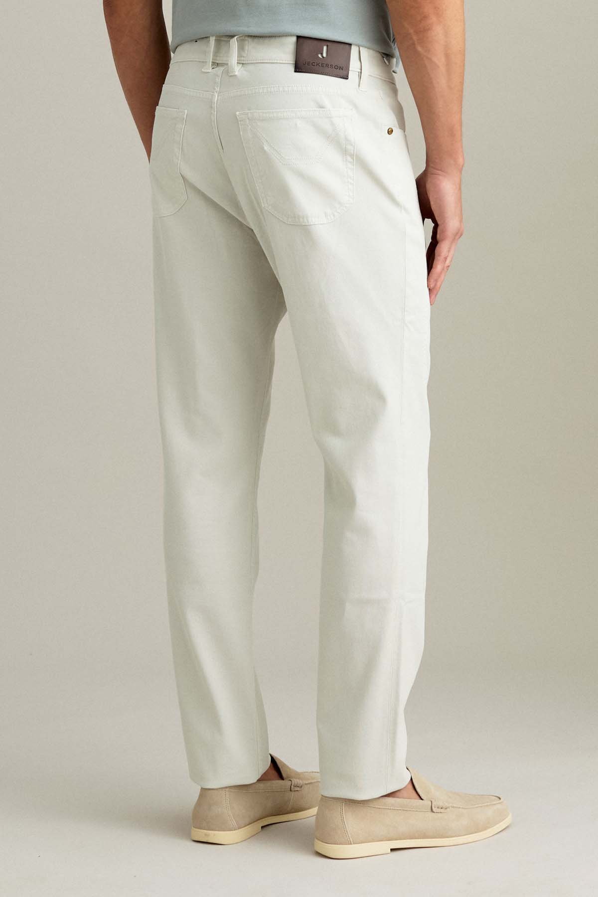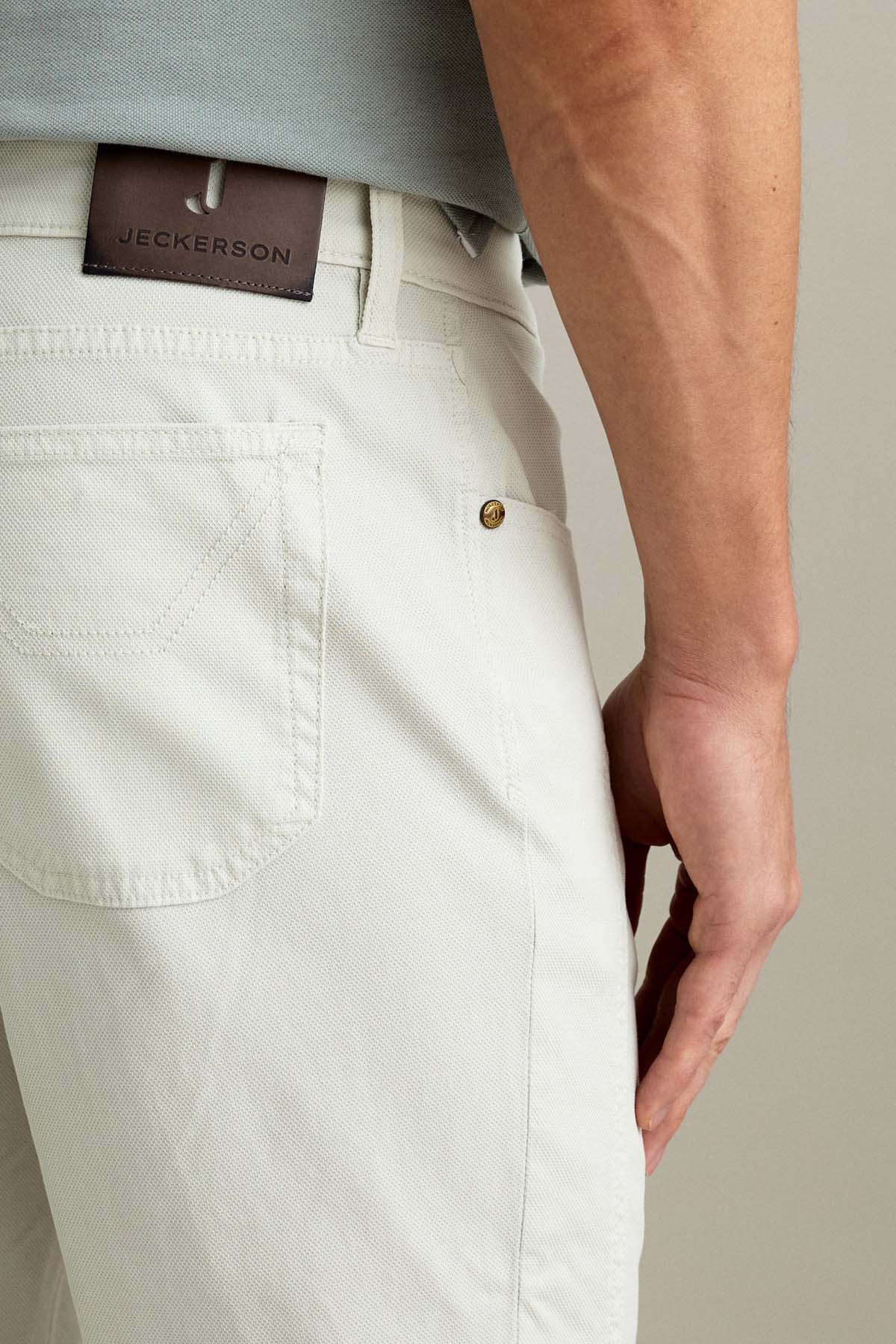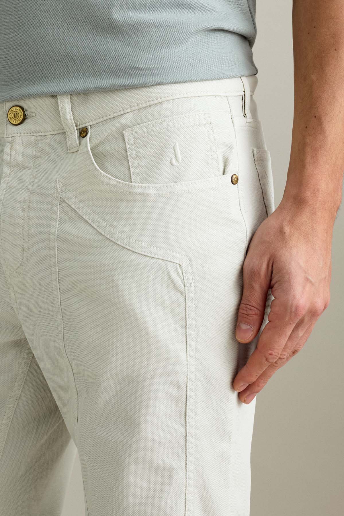 Il pantalone 5 tasche John slim fit con l’iconico inserto toppa interpreta uno stile contemporaneo garantendo comfort e versatilità, con una linea pulita e attuale. Realizzato in armatura comfort micro nido d’ ape, la tinta in capo in colore Grigio Ghiaccio regala un’estetica raffinata e versatile, perfetta per look casual e smart casual. Chiusura con zip, salpa in pelle, bottone cintura e rivetti personalizzati color ottone opaco definiscono il capo con dettagli iconici e curati.