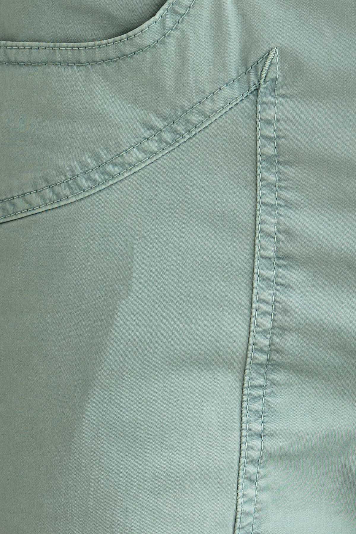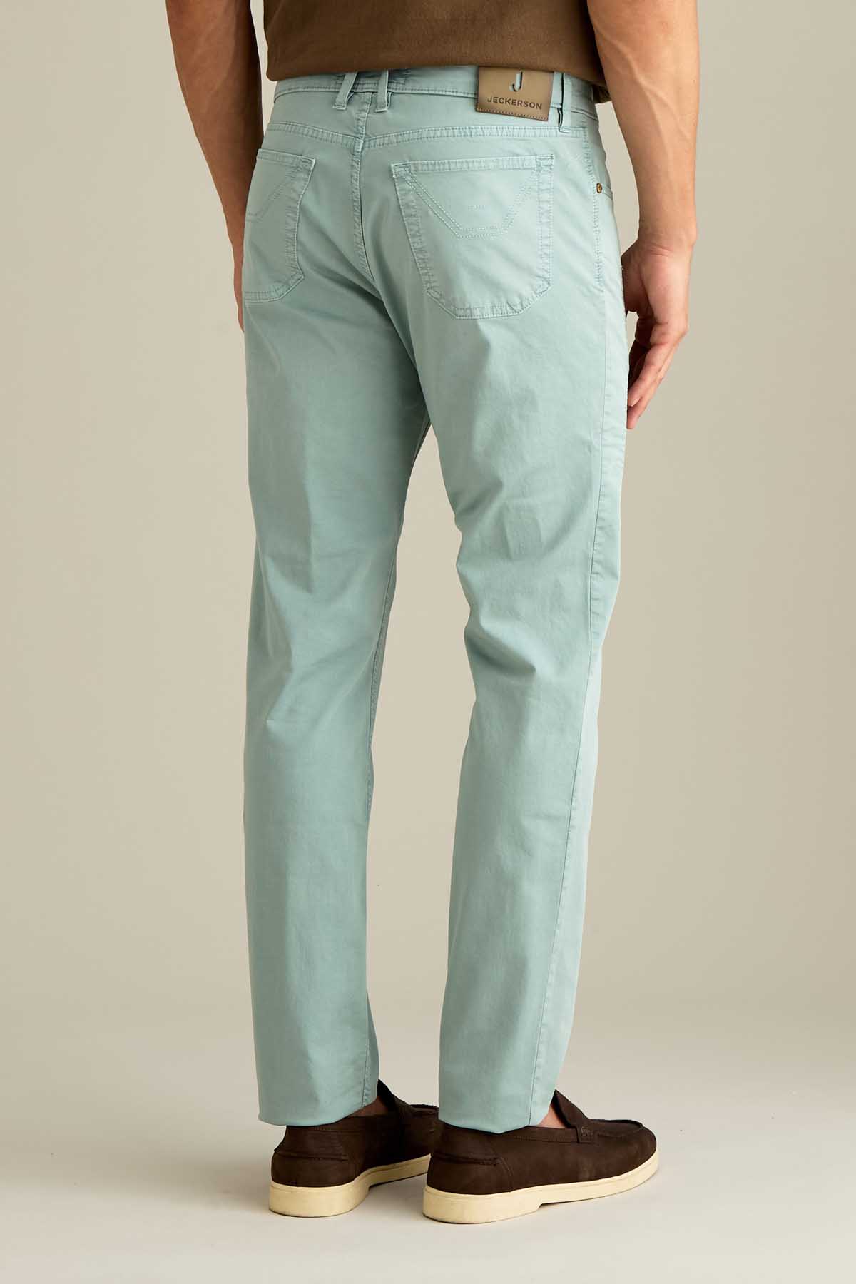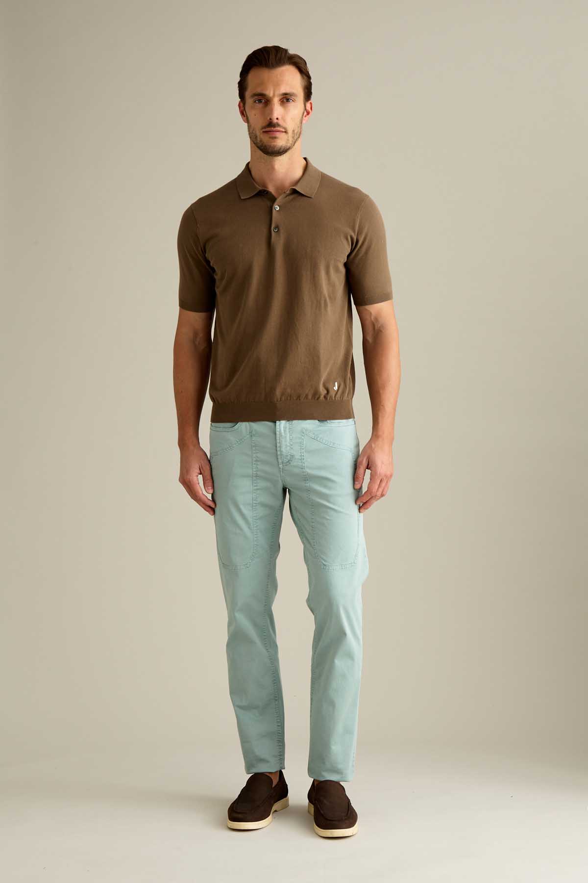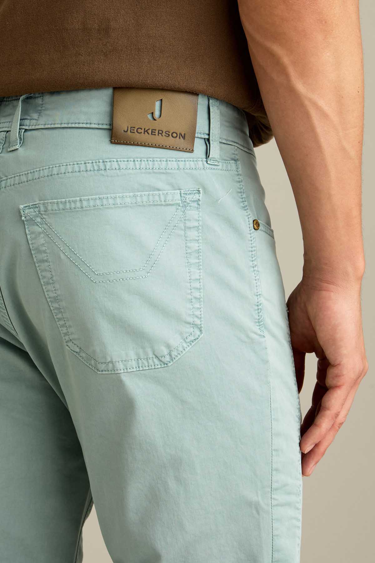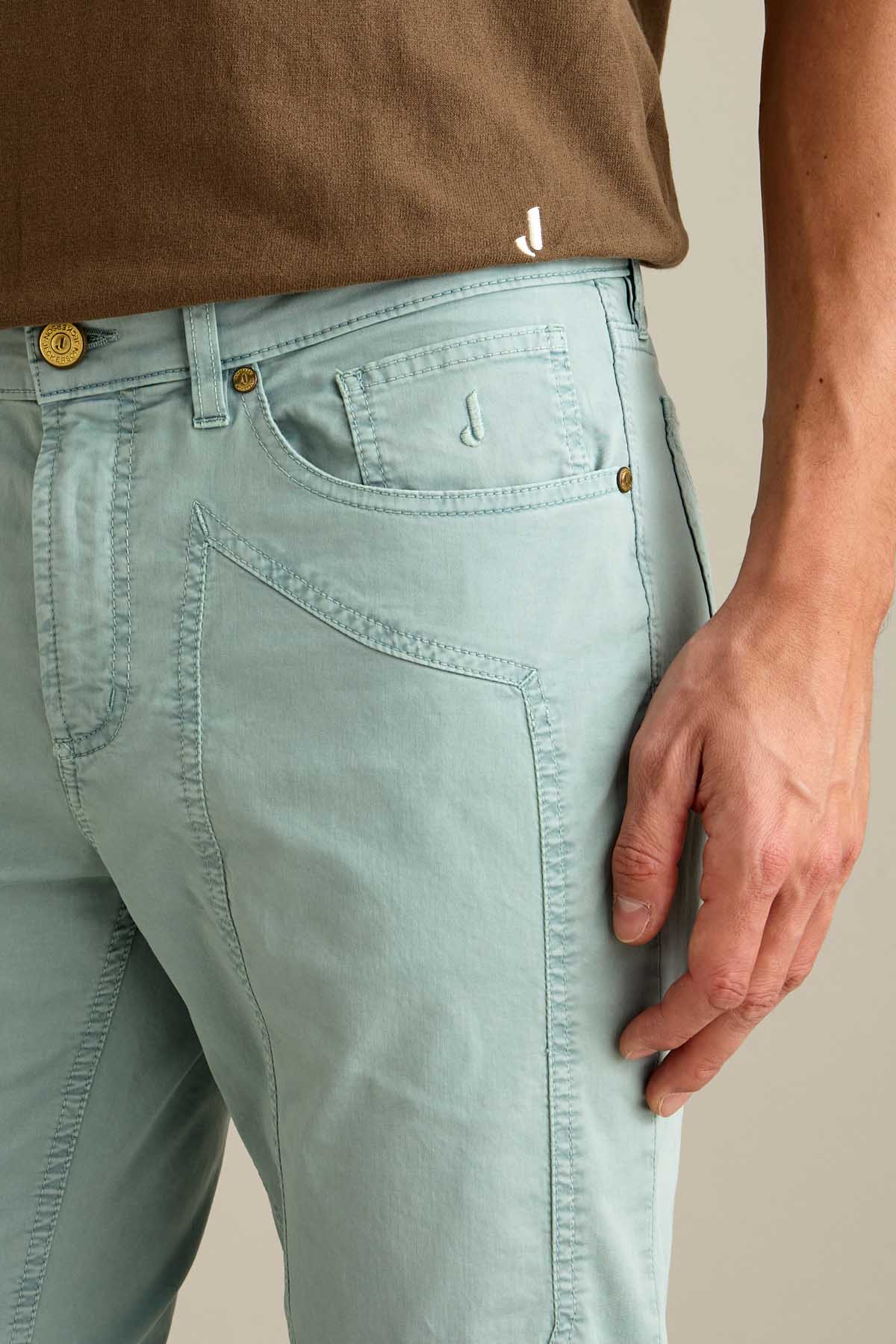 Il pantalone John 5 tasche slim fit, con iconico inserto toppa, è ideale per uno stile contemporaneo e versatile. Realizzato in raso comfort e sottoposto a lavaggio old, conferisce al capo un effetto tridimensionale e una mano piacevole al tatto. Tinto in capo nella tonalità Verde Pastello, dona un’estetica fresca e contemporanea. Dotato di chiusura con zip e bottone, è completato da salpa in pelle, bottone in vita e rivetti personalizzati in finitura ottone opaco.