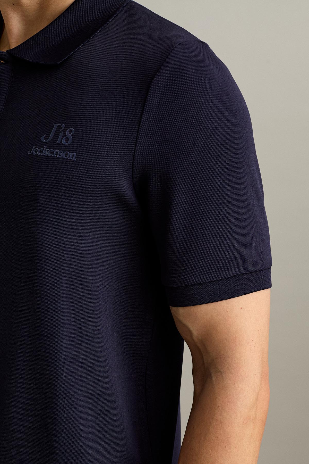La personalizzazione con logo J’18 in stampa gommata tono su tono sul petto completa il capo con un dettaglio distintivo e contemporaneo.