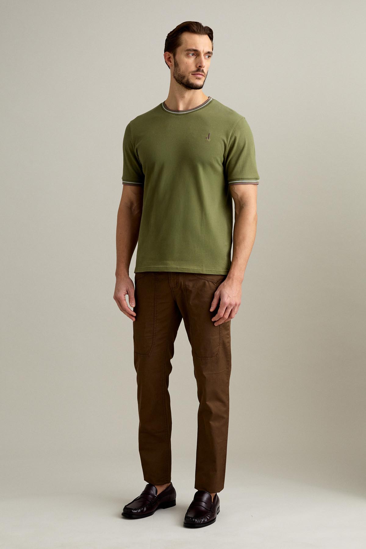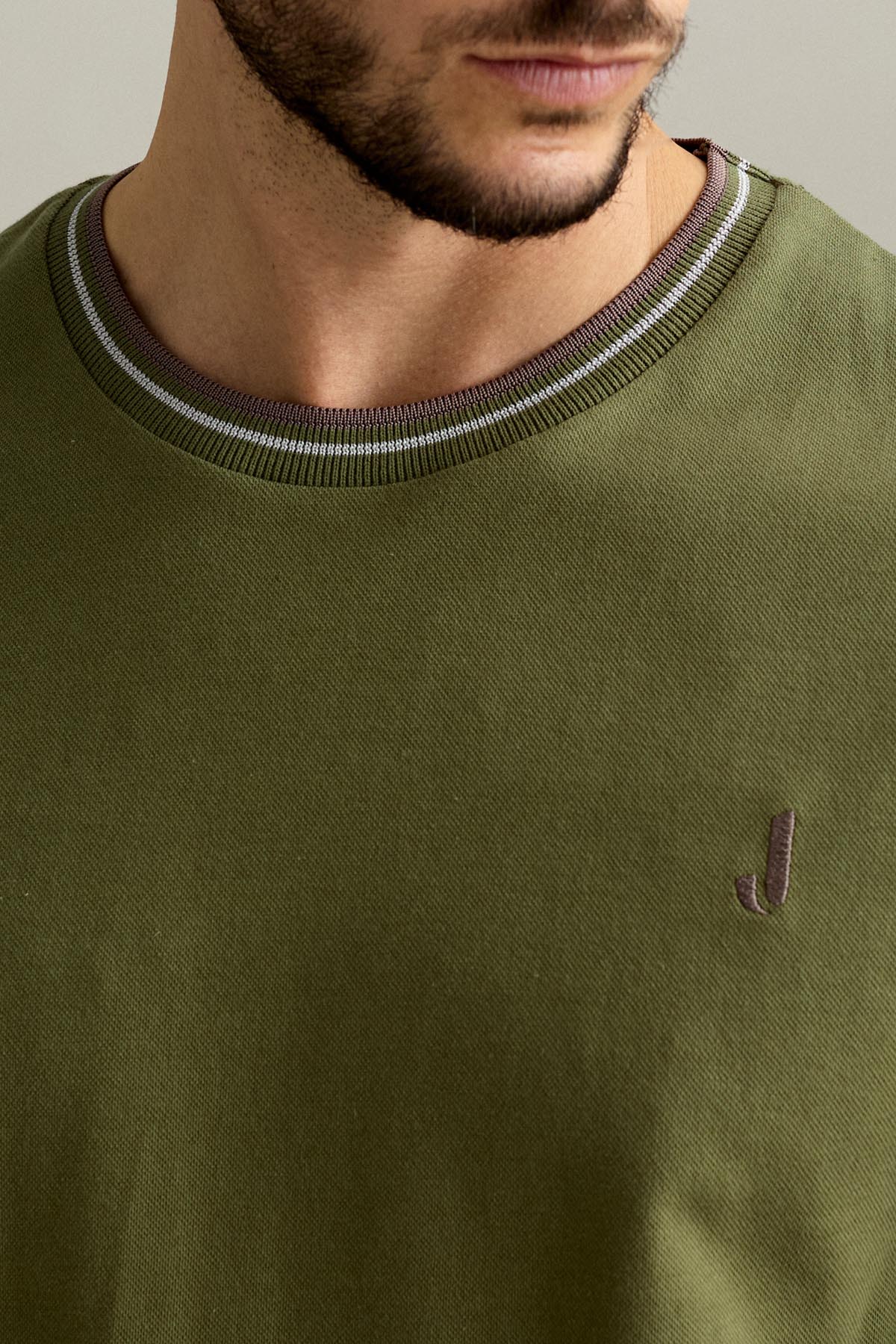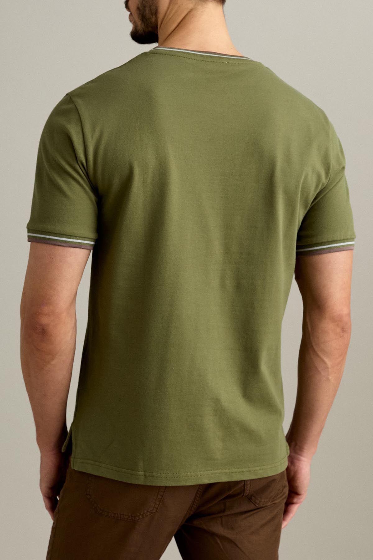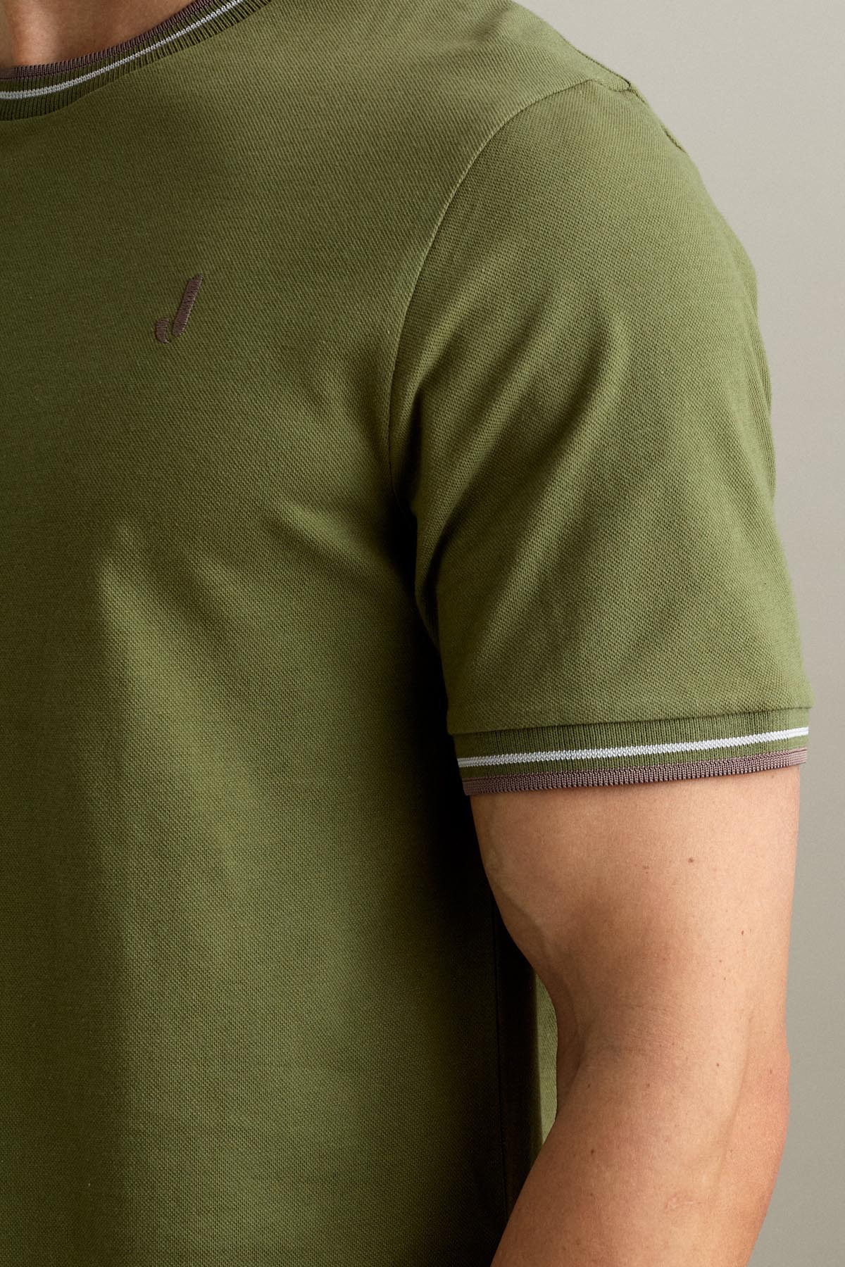 La t-shirt a manica corta è realizzata in piquet comfort nel colore Verde Salvia Scuro.